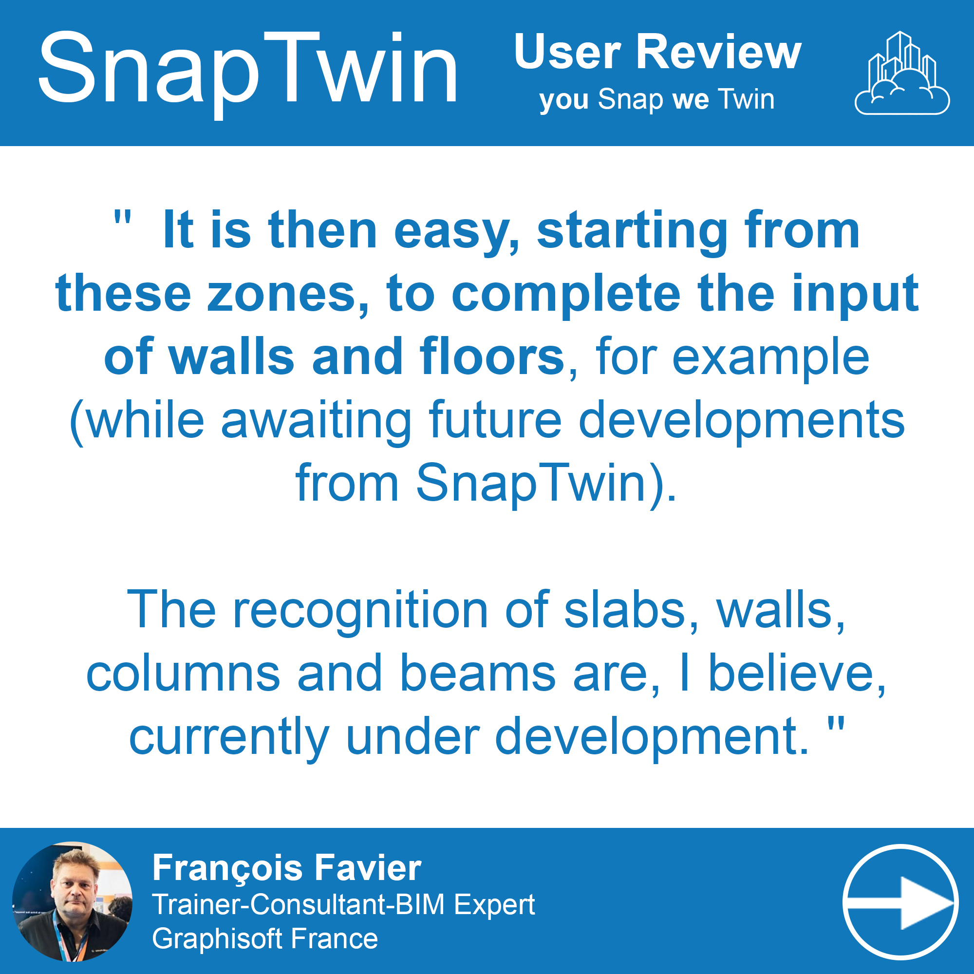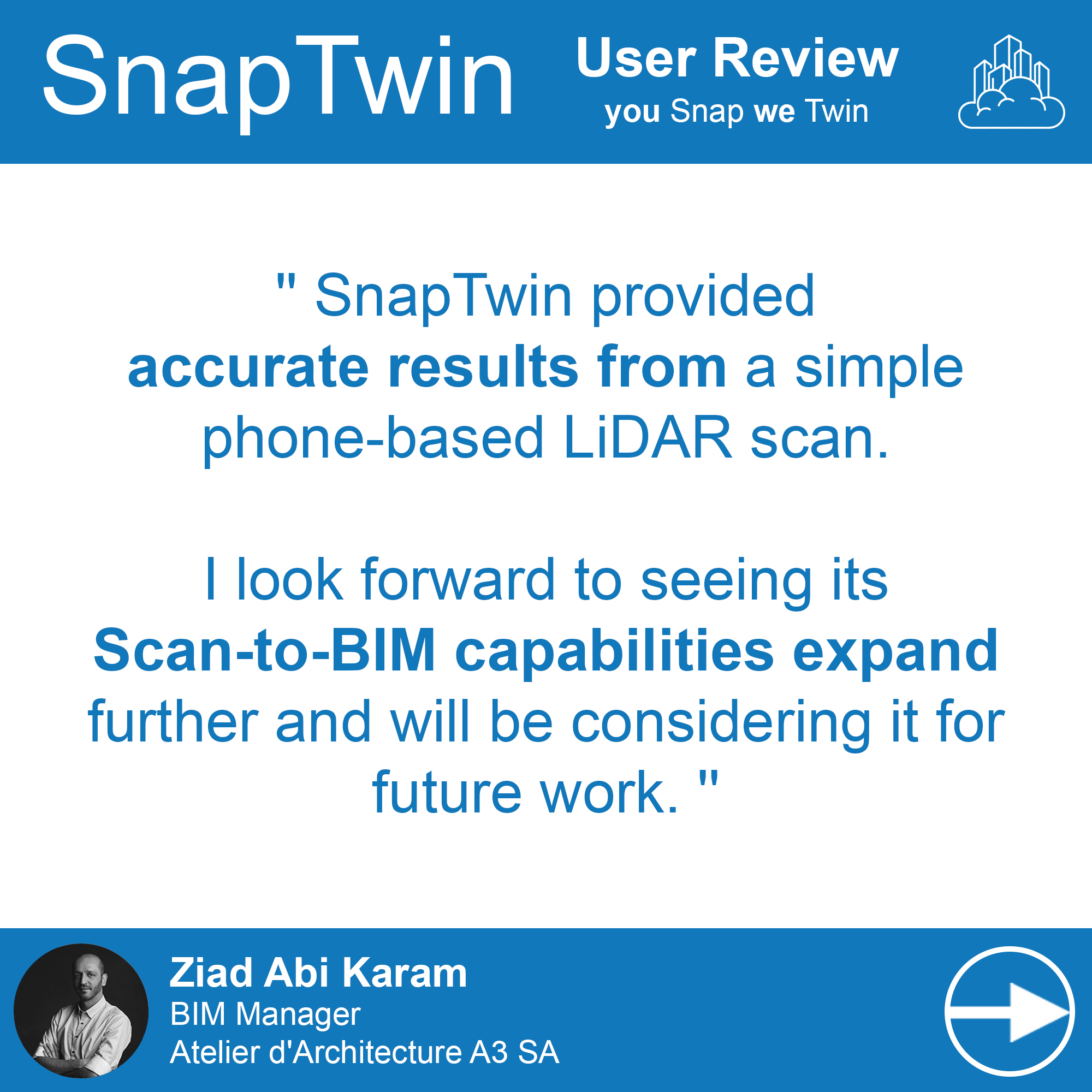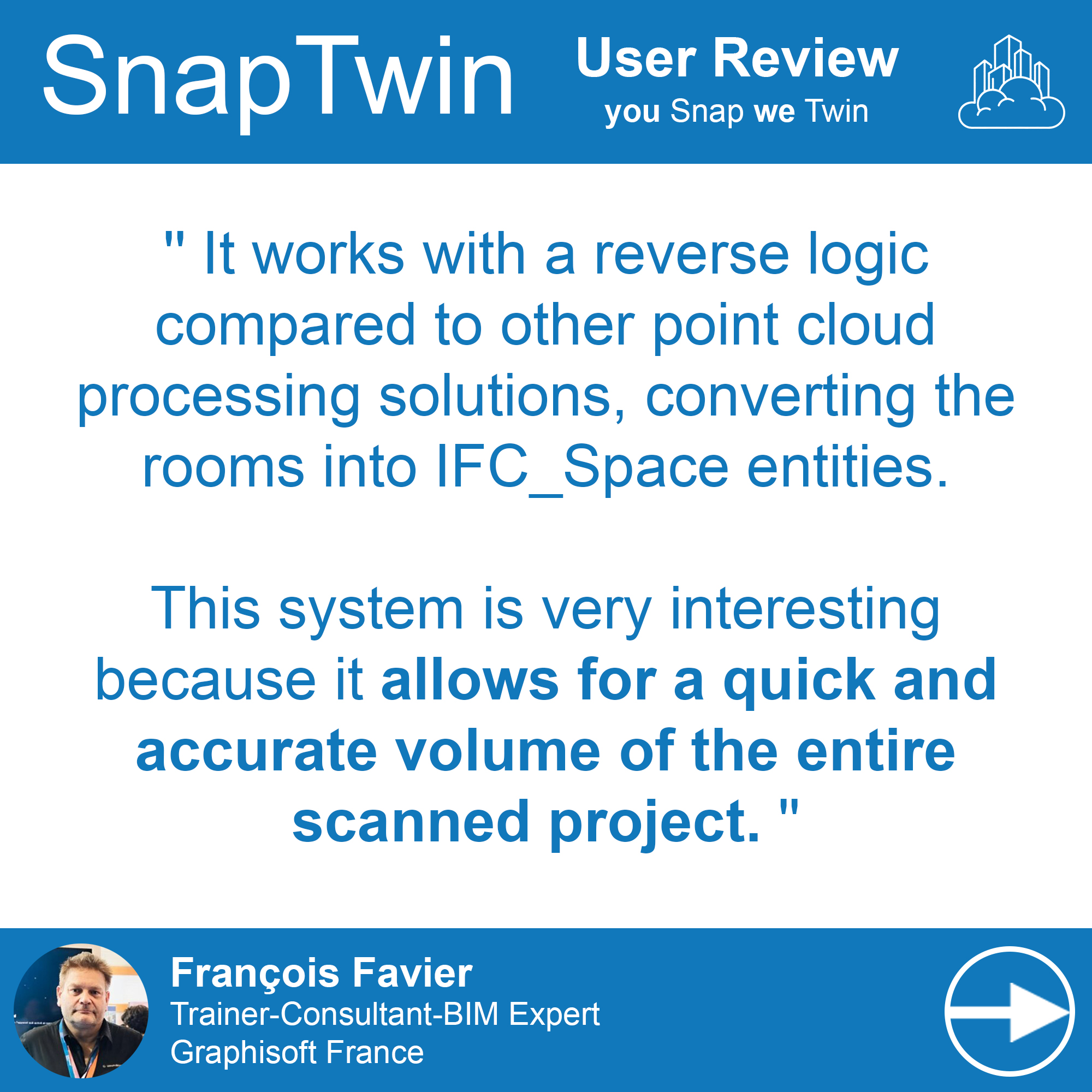 SnapTwin was born from the combination of airc.digital expertise in OpenBIM and point cloud manual modelling with dataLearning expertise in data processing. We are working daily with .e57 and .IFC, managing data and AI driven projects across different sectors, industries and countries. Our AI-driven proprietary algorithm can be used by everyone with any BIM and OpenBIM software worldwide.